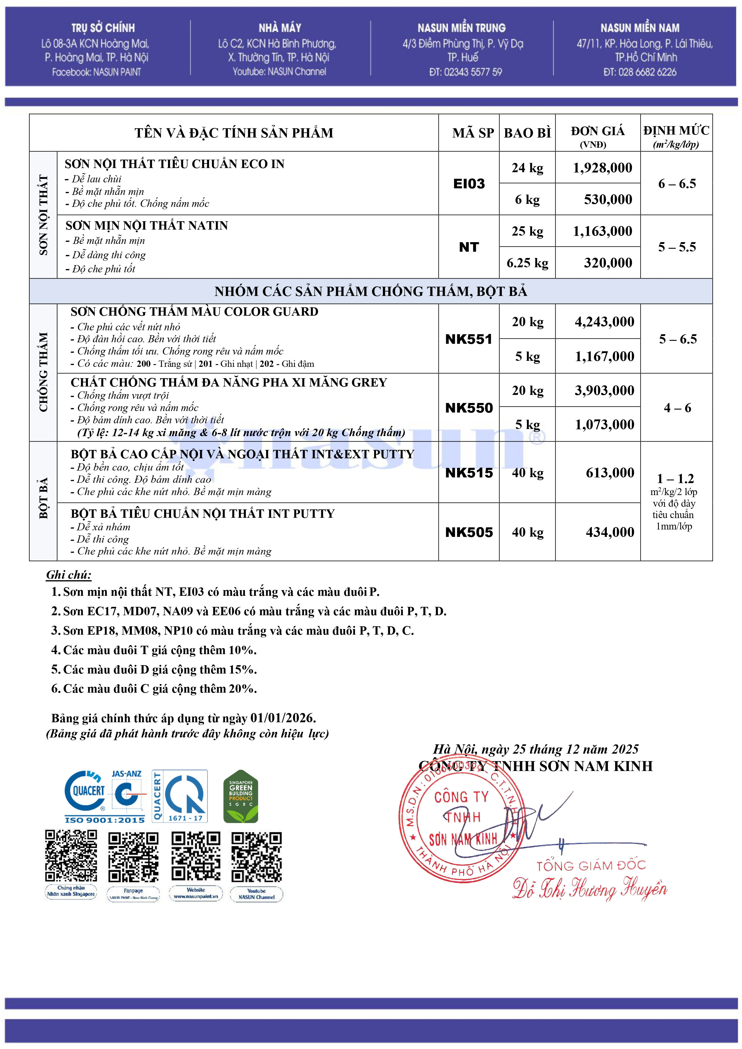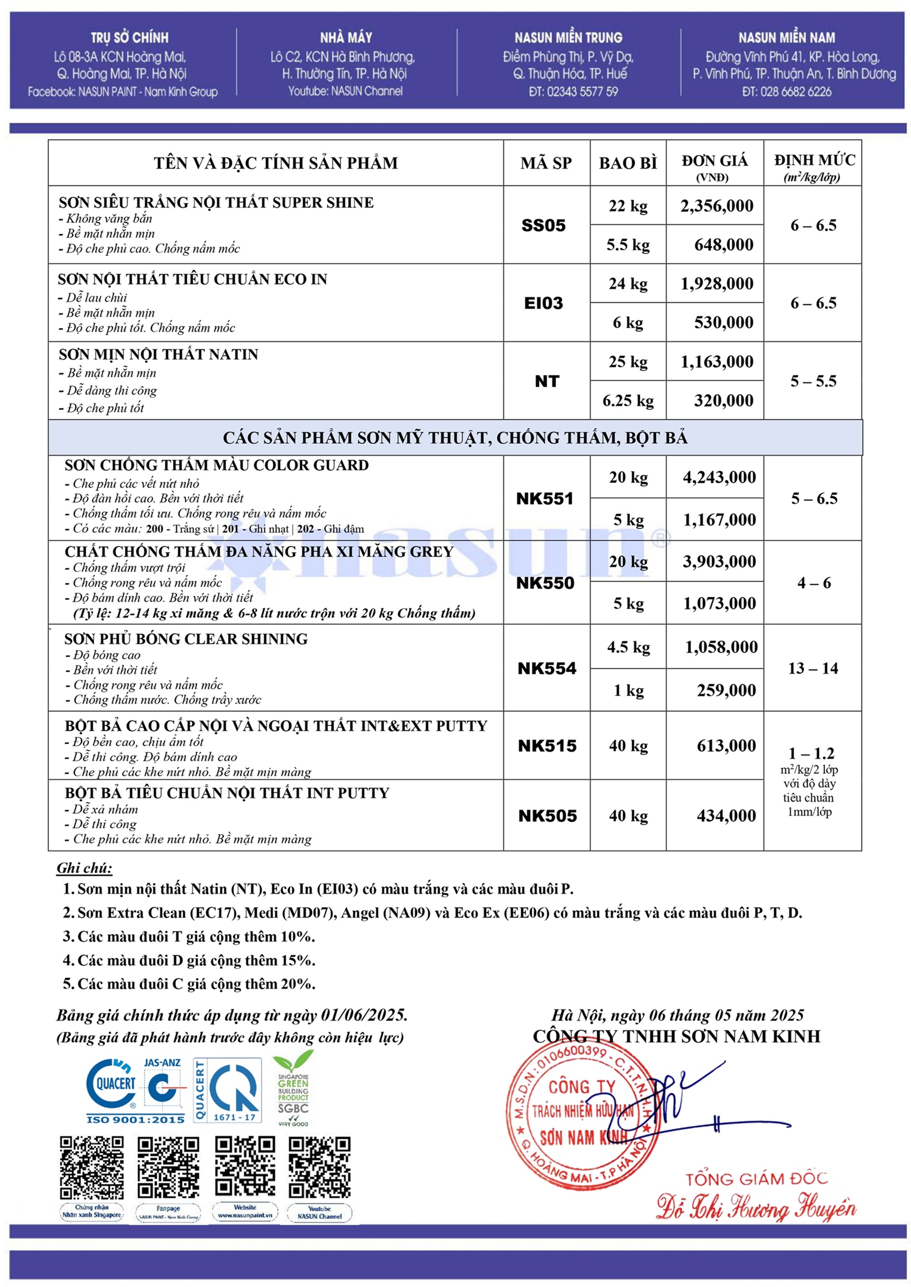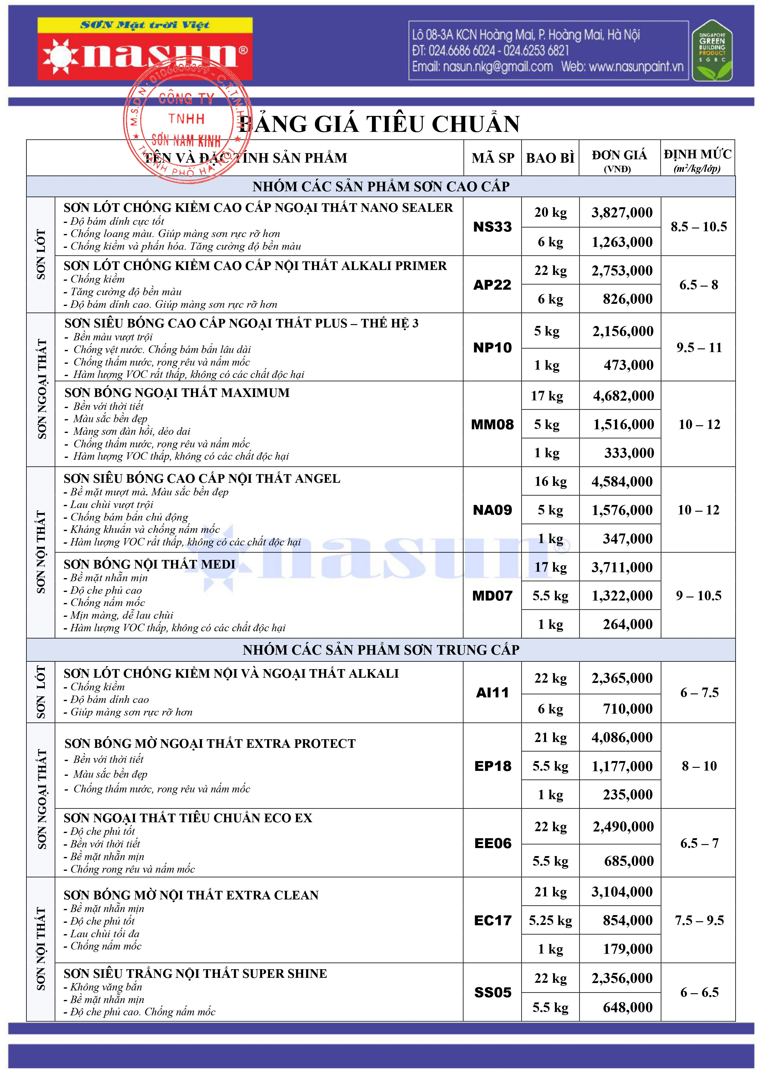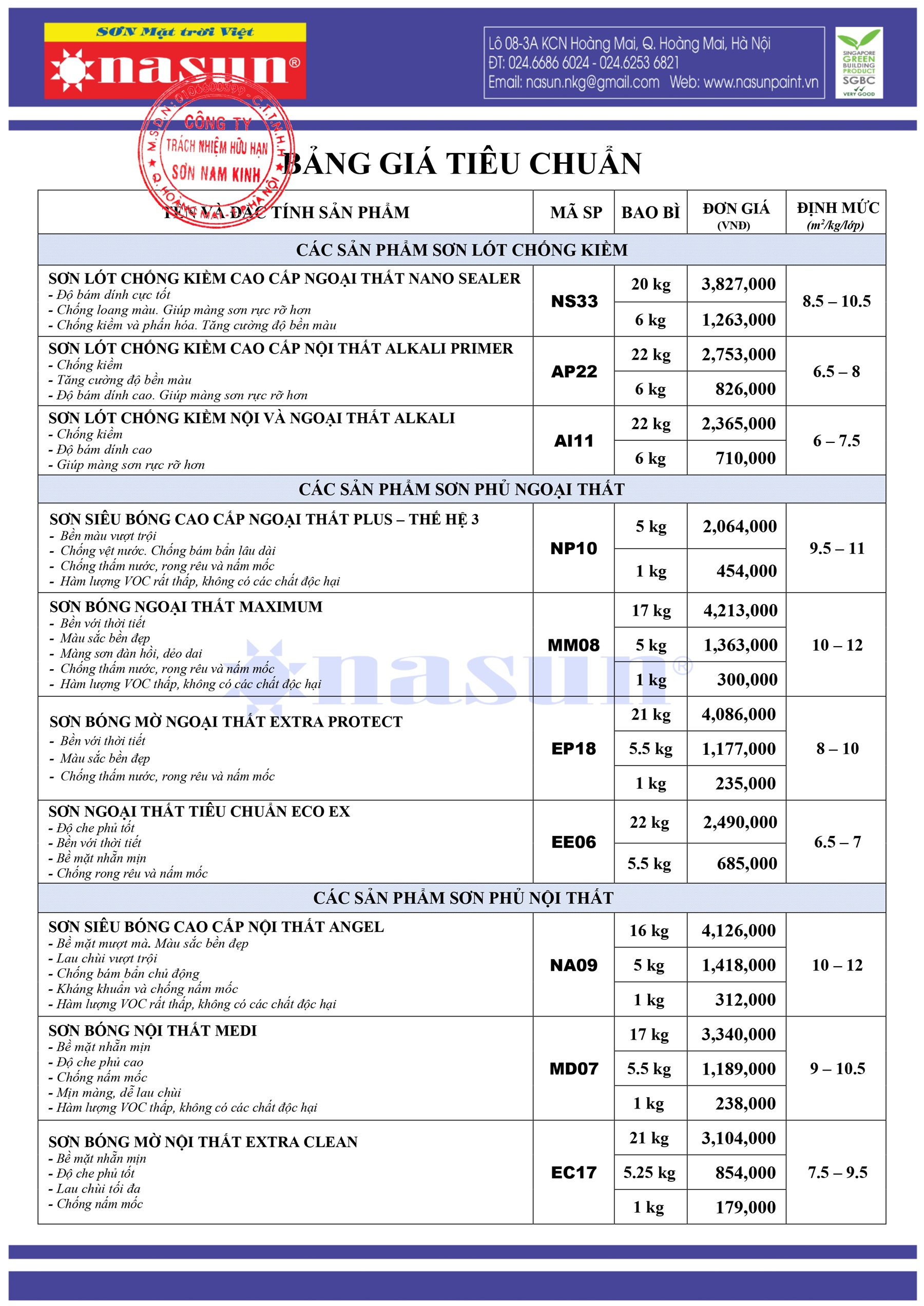 Bảng giá Sơn Nasun, Nasun Paint, bảng giá sơn, giá son, giá tiền sơn nhà, bảng giá sơn nước, báo giá sơn nước, báo giá sơn, giá sơn, bao gia son tuong, bảng giá sơn ngoại thất, sơn trắng giá bao nhiêu, bảng giá sơn hà nội